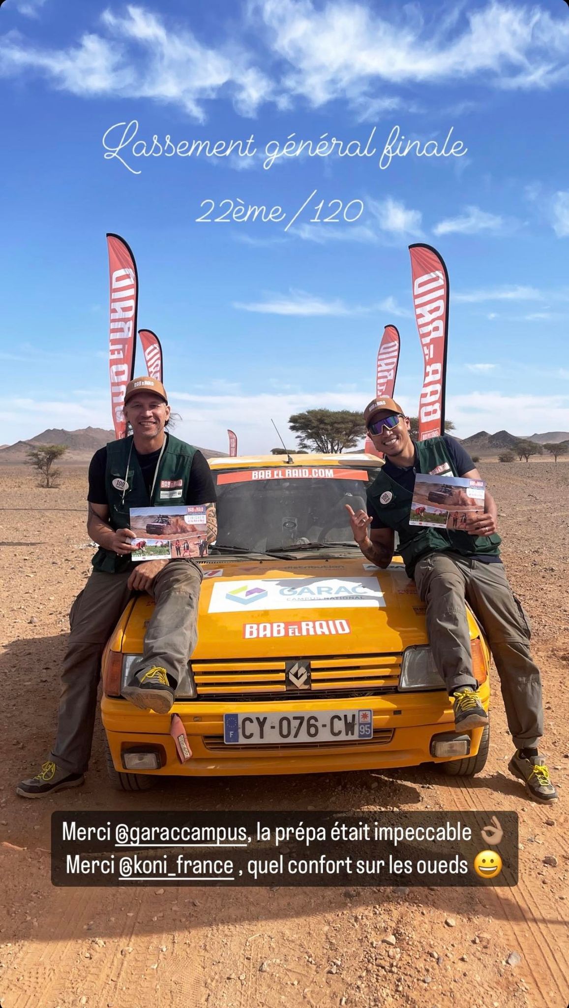 Pour leur première participation, Frédéric KHOUVILAY et Teheiura TEAHUI ont choisi le GARAC pour la préparation de leur véhicule pour le BAB EL RAID 2024, une Peugeot 205 aux couleurs de la mythique 205 T16 “Grand Raid”.