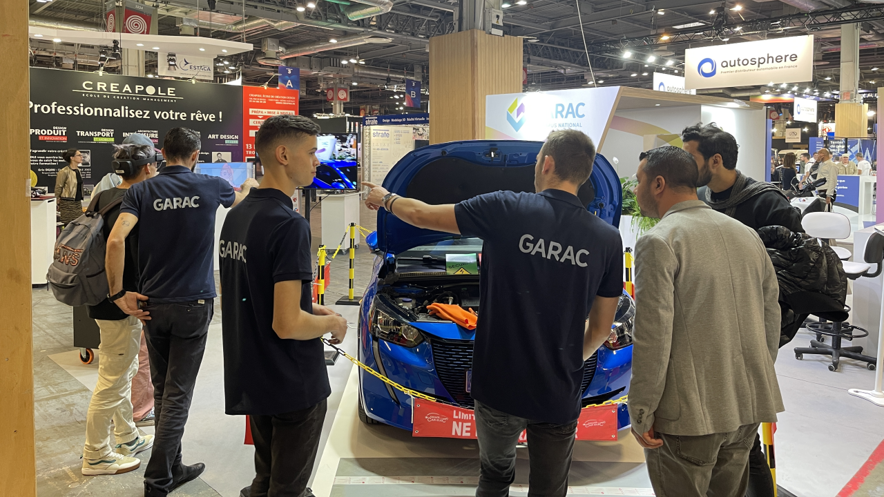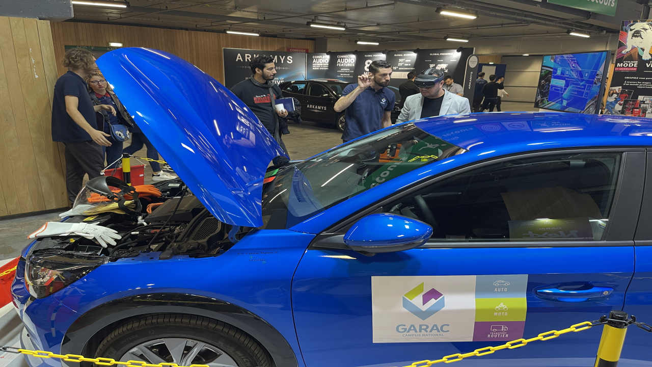 Le Mondial de l’Automobile, ce sont bien sûr des véhicule exposés comme la 208 électrique présentée sur le stand du GARAC, mais c’est aussi la présentation des métiers de demain avec le GARAC, l’Ecole nationale des Professions de l’Automobile. Une des technologies qui commencent à entrer dans les entreprises est la réalité augmentée. Cette technique permet à un réparateur grâce à des lunettes programmées d’effectuer les gestes de maintenance automobile et de s’organiser au mieux . Plus besoin de volumineux manuels de réparation ni de connexion internet : toute la démarche et la documentation sont consultables au travers de lunettes 3D. Cette animation réalisée par des élèves de M. Alexis Lenoir, en classe de BTS Maintenance des véhicules automobiles, a remporté un vrai succès auprès des visiteurs de tout âge