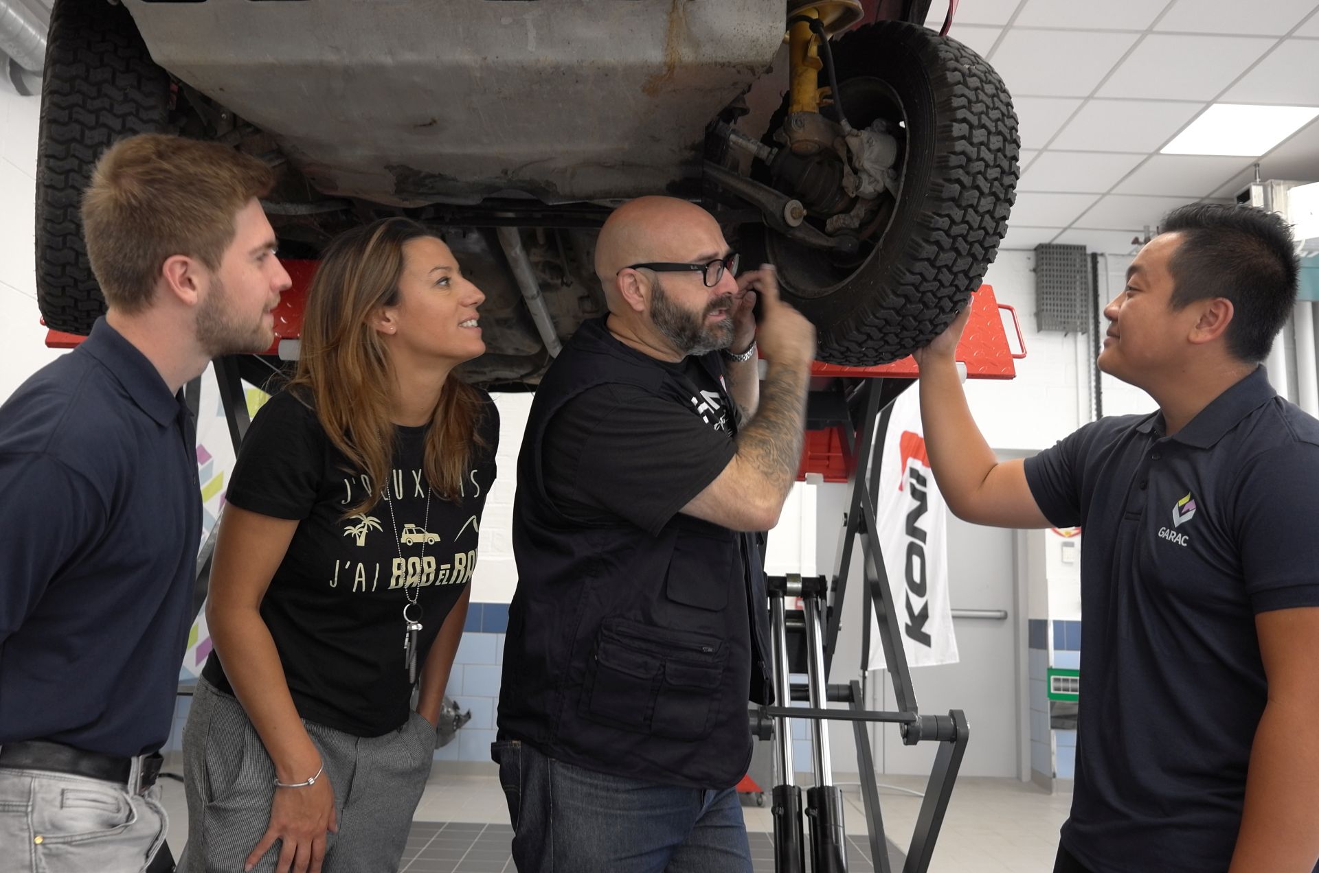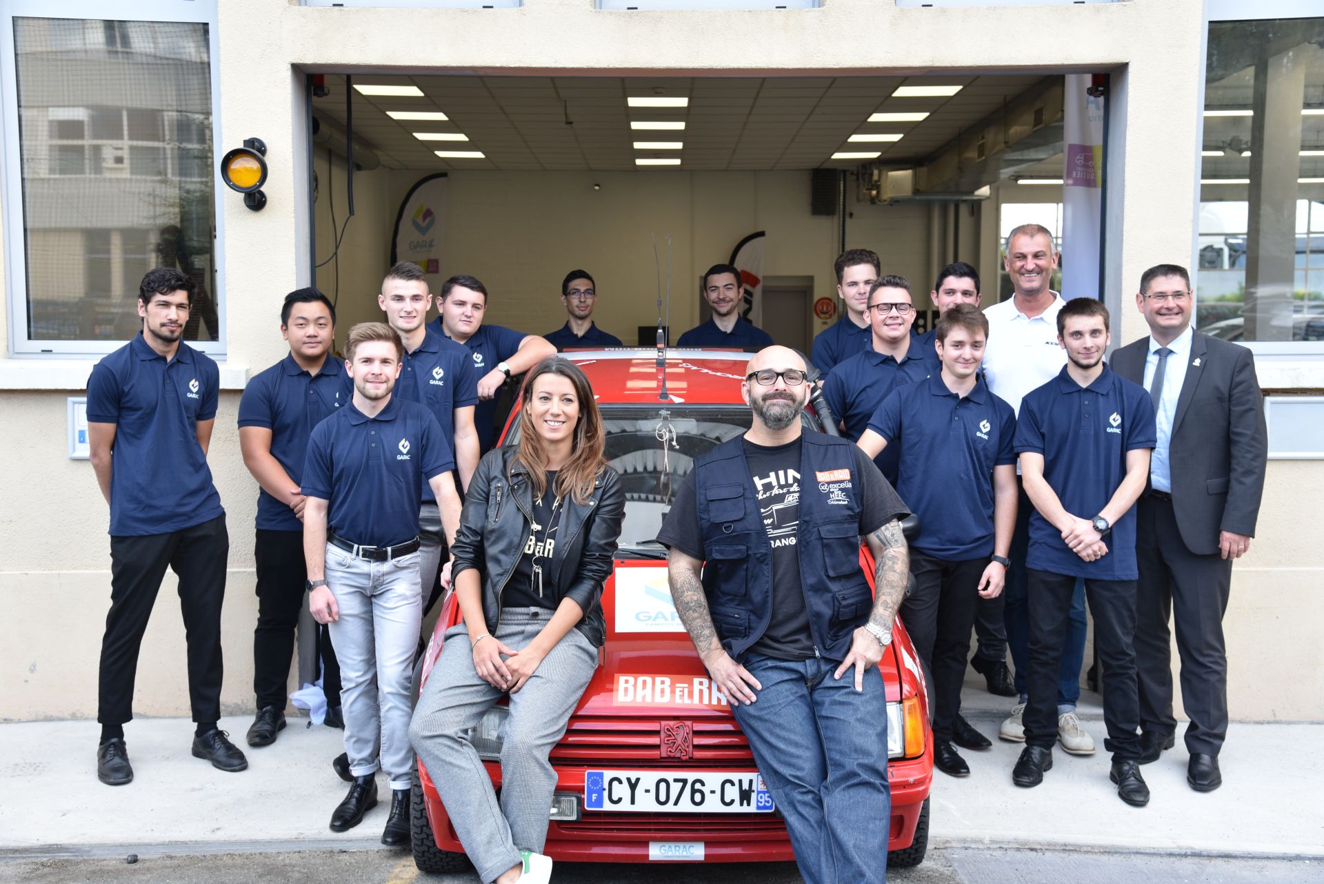Une surprise attendait les élèves en ce début d’année scolaire lors de la prise de la traditionnelle photo générale: Clémentine Fangin, la chef de projet du BAB EL RAID, et Stéphane Ducreau, Directeur de KONI France, ont présenté le Parrain de l’édition 2020 du célèbre Raid de MAIENGA : Gerry Blyenberg. Une présence qui s’expliquait par le nouveau défi lancé par KONI au GARAC : confier le pilotage de la 205 KONI-GARAC à Gerry et à sa copilote Marie Blin, les élèves préparant le véhicule pour qu’il soit fin prêt en février pour le départ.