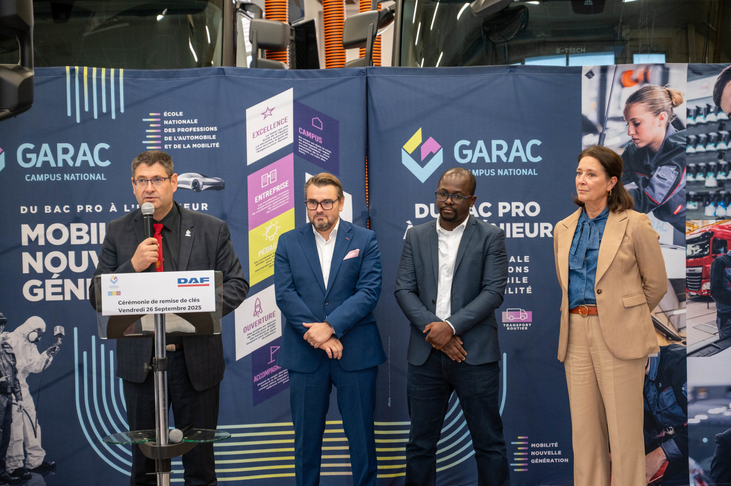 Le GARAC a reçu un camion DAF XG équipé des dernières innovations technologiques: design aérodynamique, chaîne cinématique optimisée, gestion moteur éco-efficiente, et systèmes avancés d’aide à la conduite. Ce véhicule servira de support pédagogique pour les élèves en BAC PRO, BTS VTR, TFP TEAVA et TEAVVUI, leur permettant de se former dans des conditions proches de la réalité professionnelle.