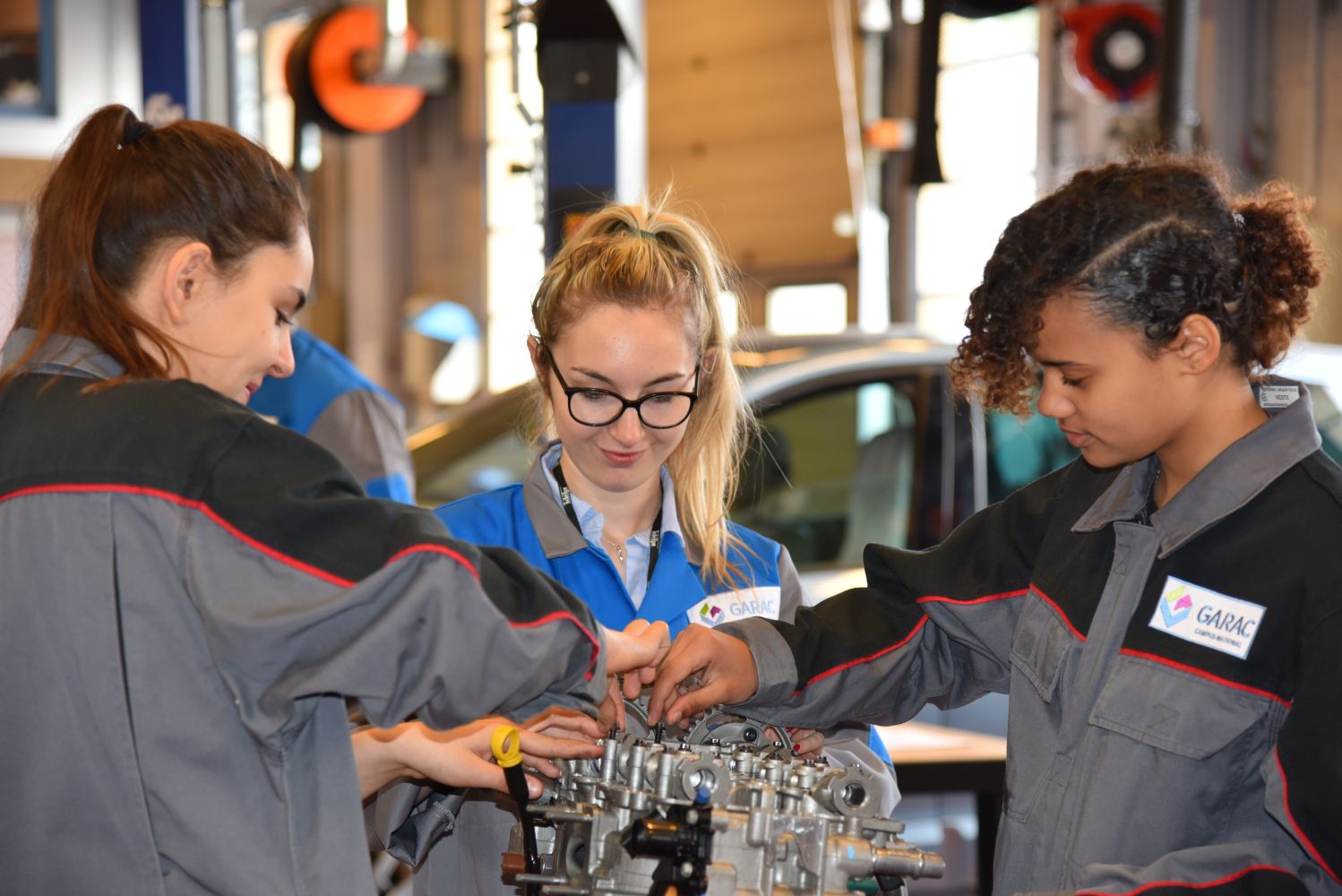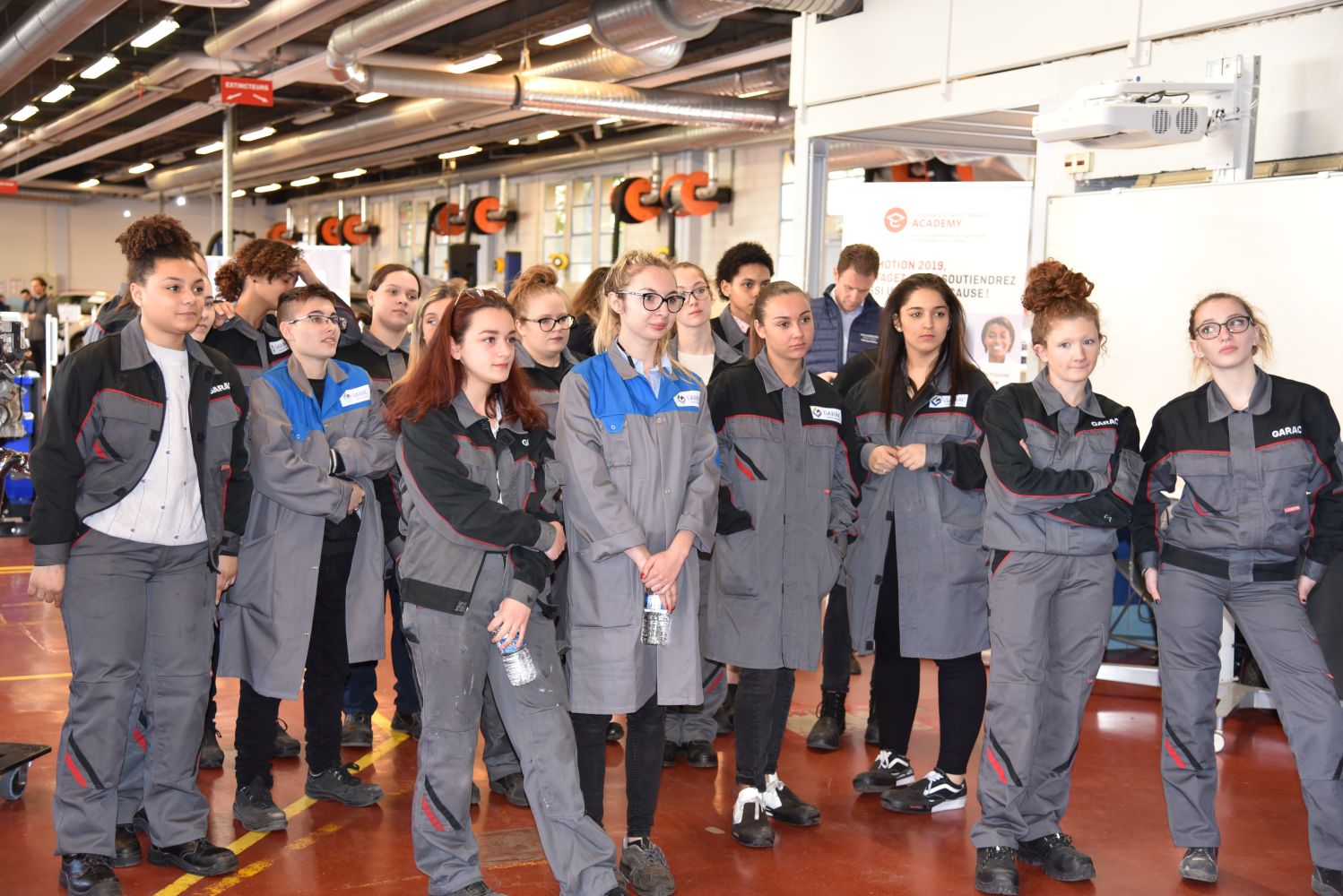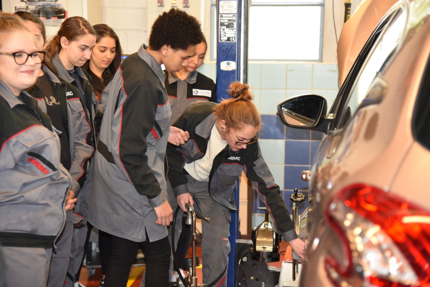 Une journée spéciale pour les jeunes filles s’intéressant au monde de l’automobile a été organisée au GARAC lors de la Semaine des Services de l’Automobile et de la Mobilité. Elles ont été accueillies par une partie des jeunes femmes en formation au GARAC et par des enseignants et des professionnels partenaires du GARAC (Volkswagen Group France, PSA Retail et BMW). Elles ont été en immersion toute la matinée en atelier Mécanique-Electronique Automobile.