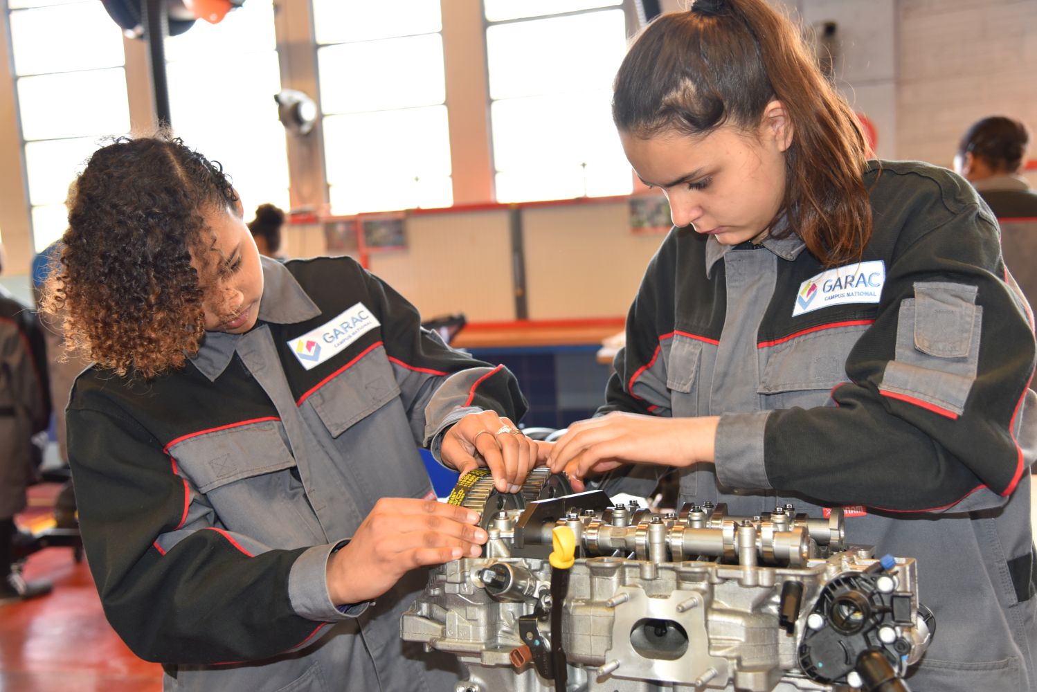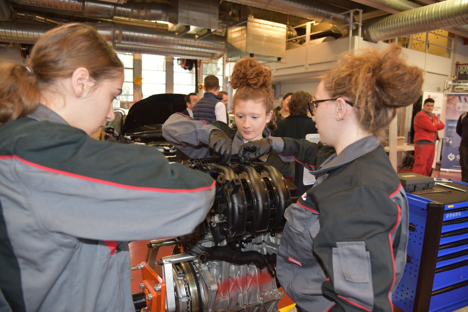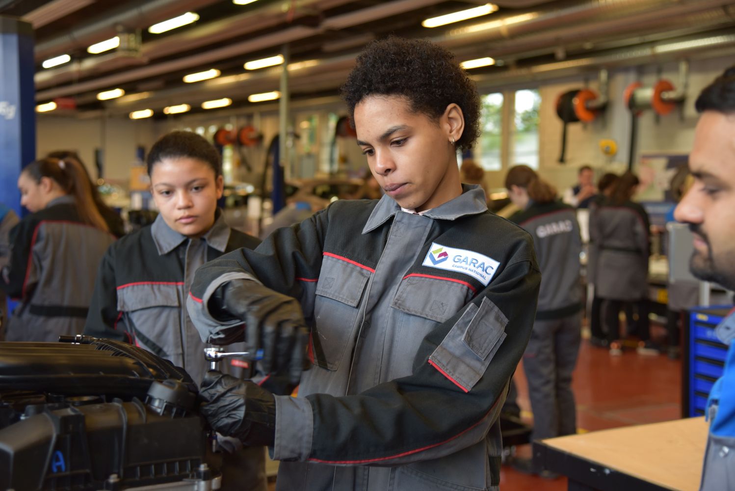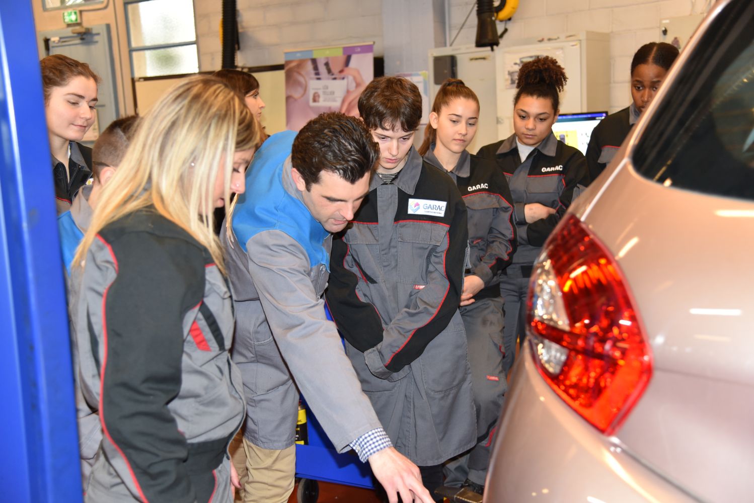 Une journée spéciale pour les jeunes filles s’intéressant au monde de l’automobile a été organisée au GARAC lors de la Semaine des Services de l’Automobile et de la Mobilité. Elles ont été accueillies par une partie des jeunes femmes en formation au GARAC et par des enseignants et des professionnels partenaires du GARAC (Volkswagen Group France, PSA Retail et BMW). Elles ont été en immersion toute la matinée en atelier Mécanique-Electronique Automobile.