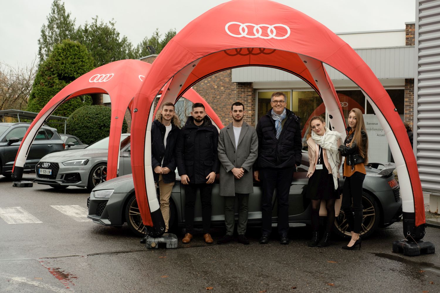 Outre la découverte des véhicules emblématiques des 5 marques du groupe (VW, Audi, Skoda, Seat, VW véhicules utilitaires), avec quelques fleurons tels que la Audi R8 ou la RS5, les jeunes ont visité l’entrepôts de pièces de rechange (70 000 m2) qui alimente l’ensemble des concessions française en pièces détachées.