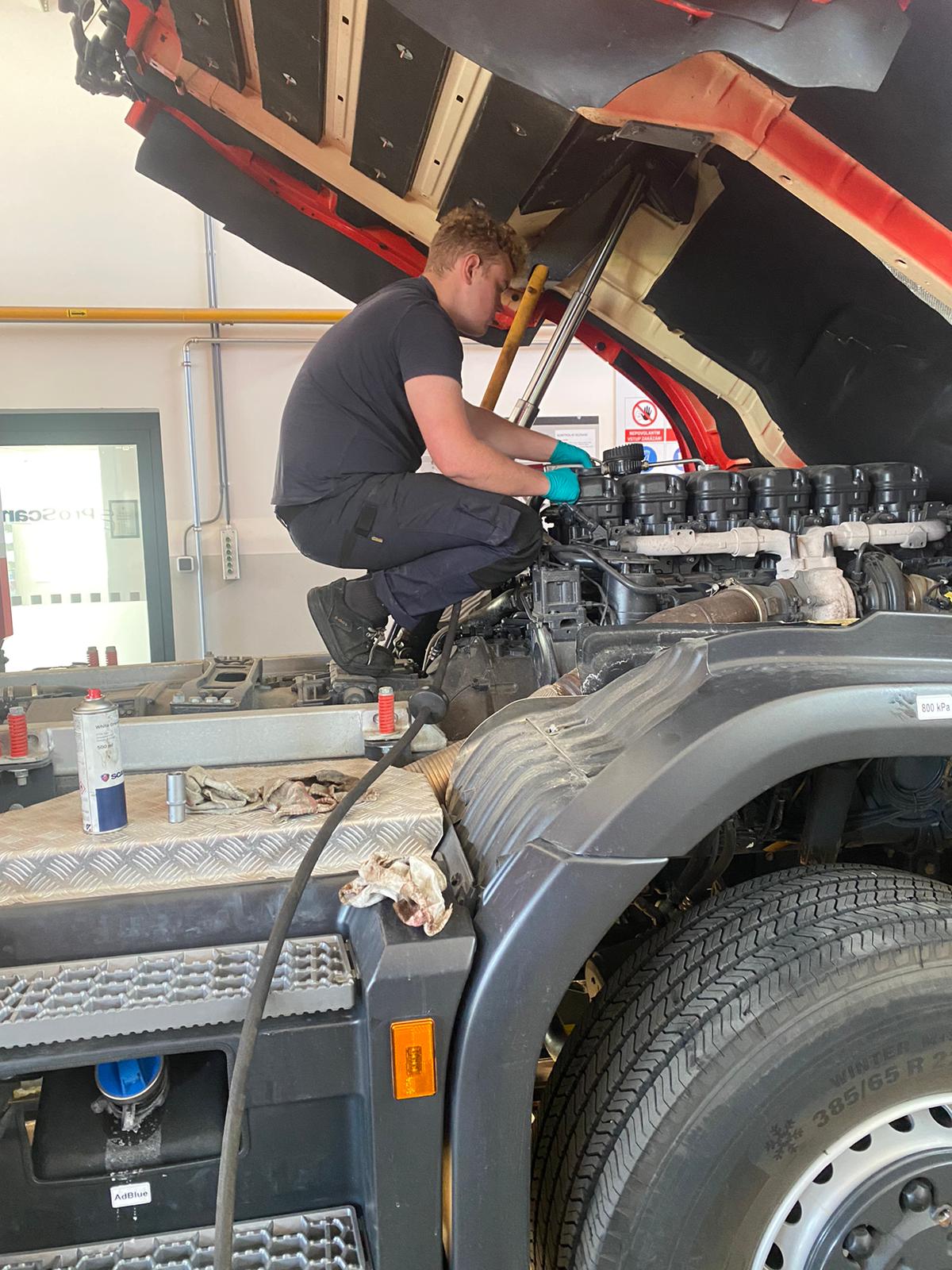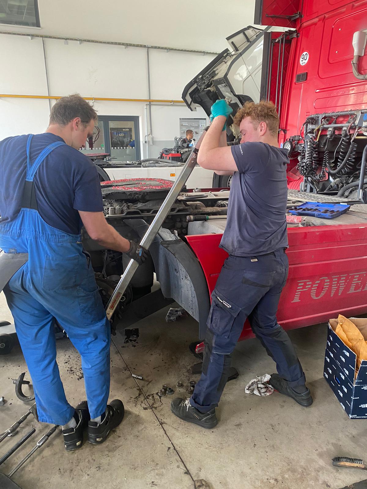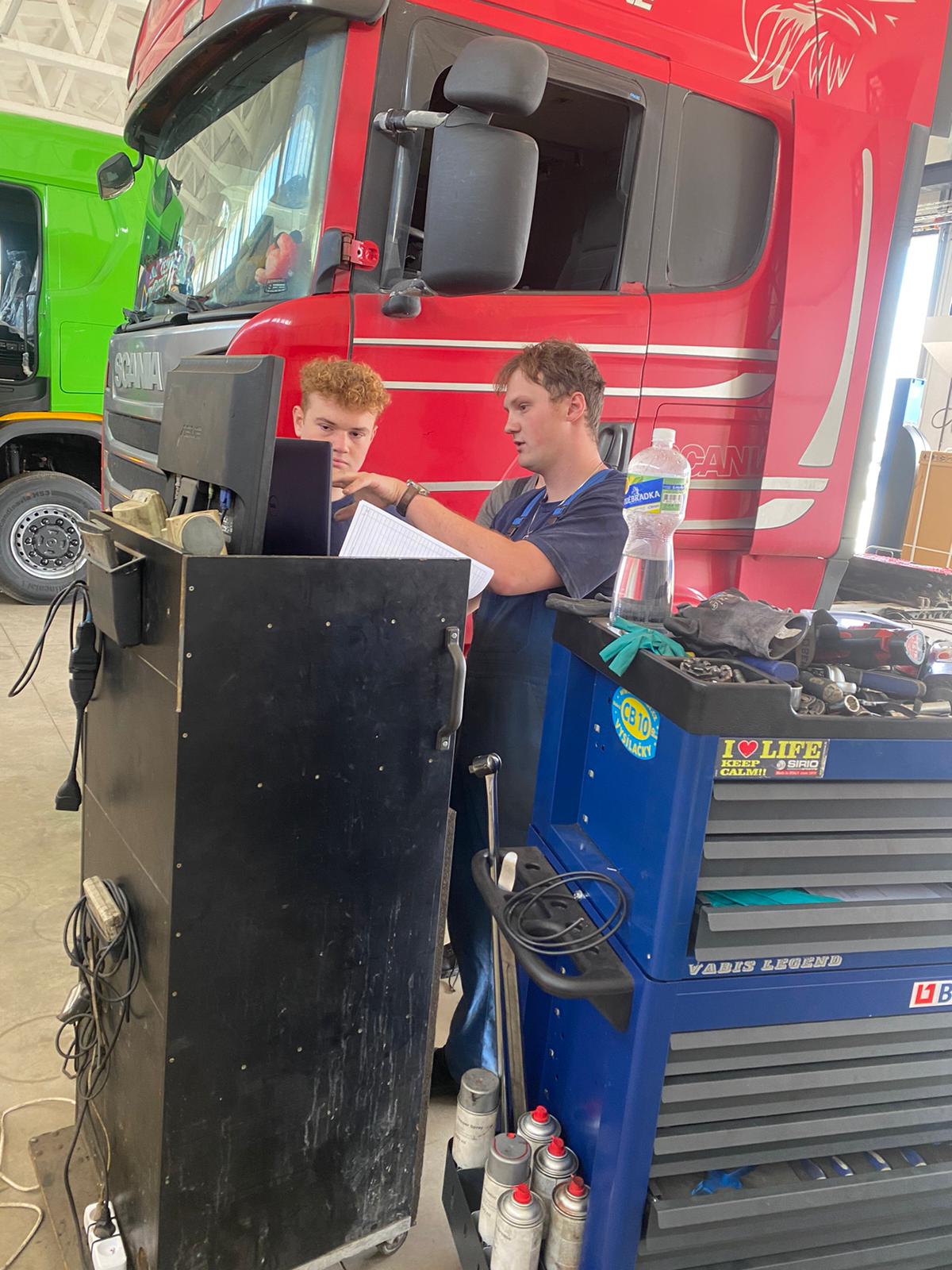L’accueil chaleureux s’accompagne de véritables missions de travail au sein des concessions. Les élèves qui ont demandé à être en en poids lourds sont particulièrement satisfaits de découvrir un autre univers.