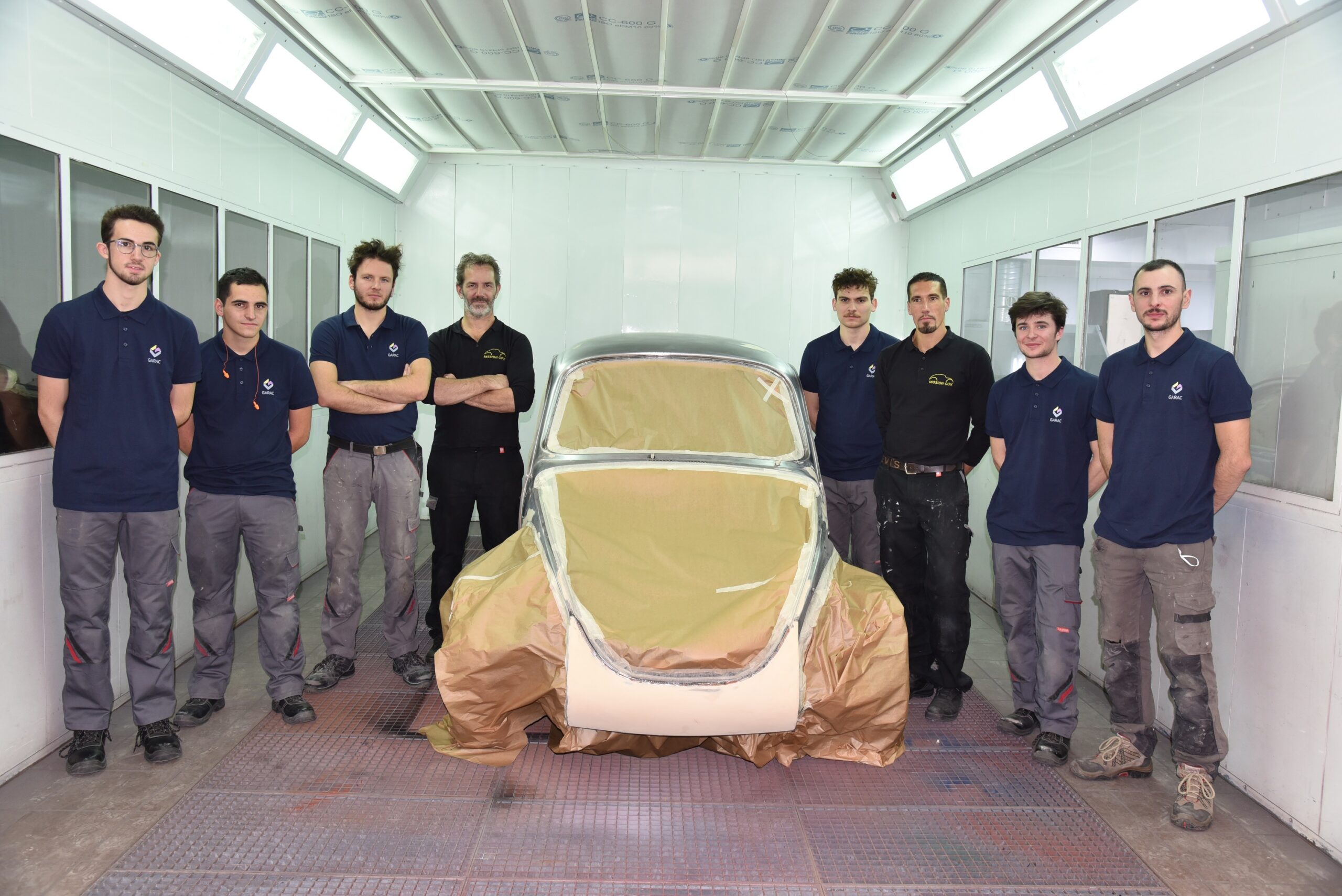 Sous la férule des deux pilotes (François Hecquet, professeur en maintenance auto et Yannick Duru, professeur et formateur en carrosserie-peinture), 50 jeunes ont participé durant l’année 2022 à la restauration. Ils sont issus de sections variées telles le CQP véhicules anciens et historiques Tôlier, le Bac Pro Réparation de carrosseries, le CAP Peintre, le BTS Maintenance des véhicules particuliers.