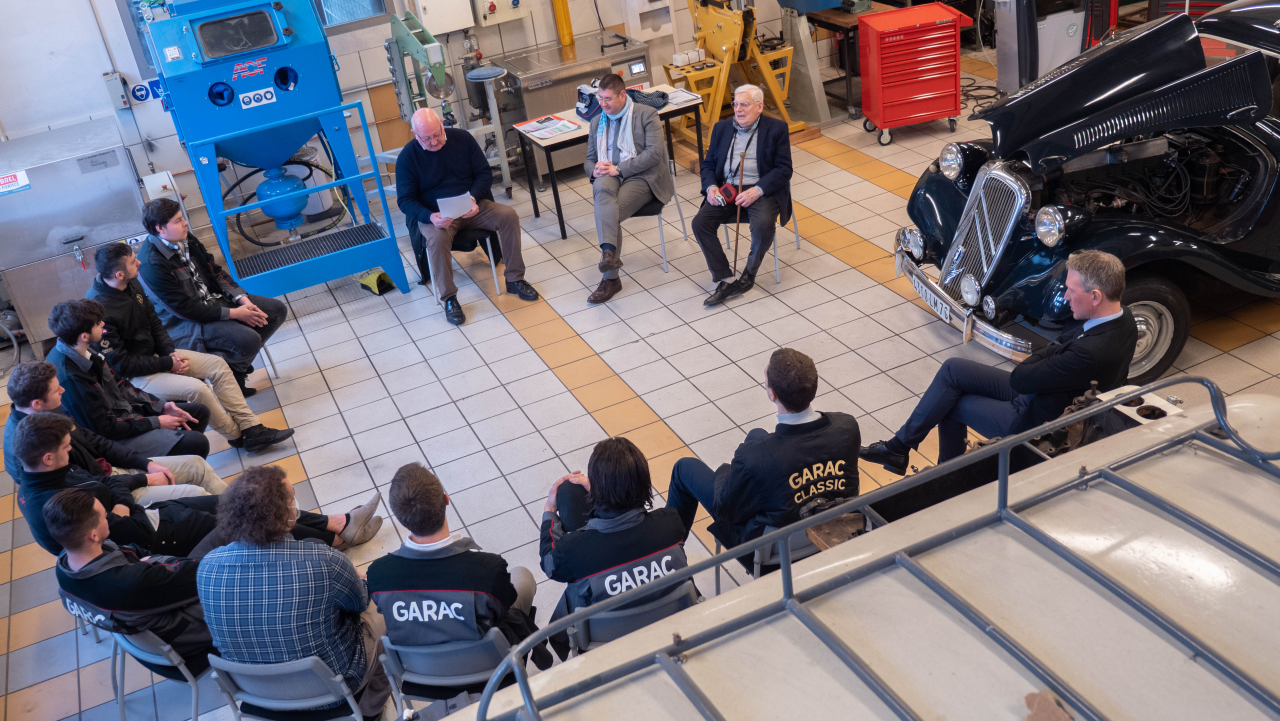 Les mécaniciens réparateurs de véhicules anciens et historiques en formation ont bénéficié d’une MASTERCLASS exceptionnelle sur la Traction 15-6 Hydro du GARAC. L’ancien propriétaire et le mécanicien qui a assuré l’entretien du véhicule se sont spécialement déplacés depuis Rouen pour transmettre leur savoir. Une rencontre entre passionnés qui contribue à la transmission du savoir, un élément très important dans le Monde des voitures d’époque.