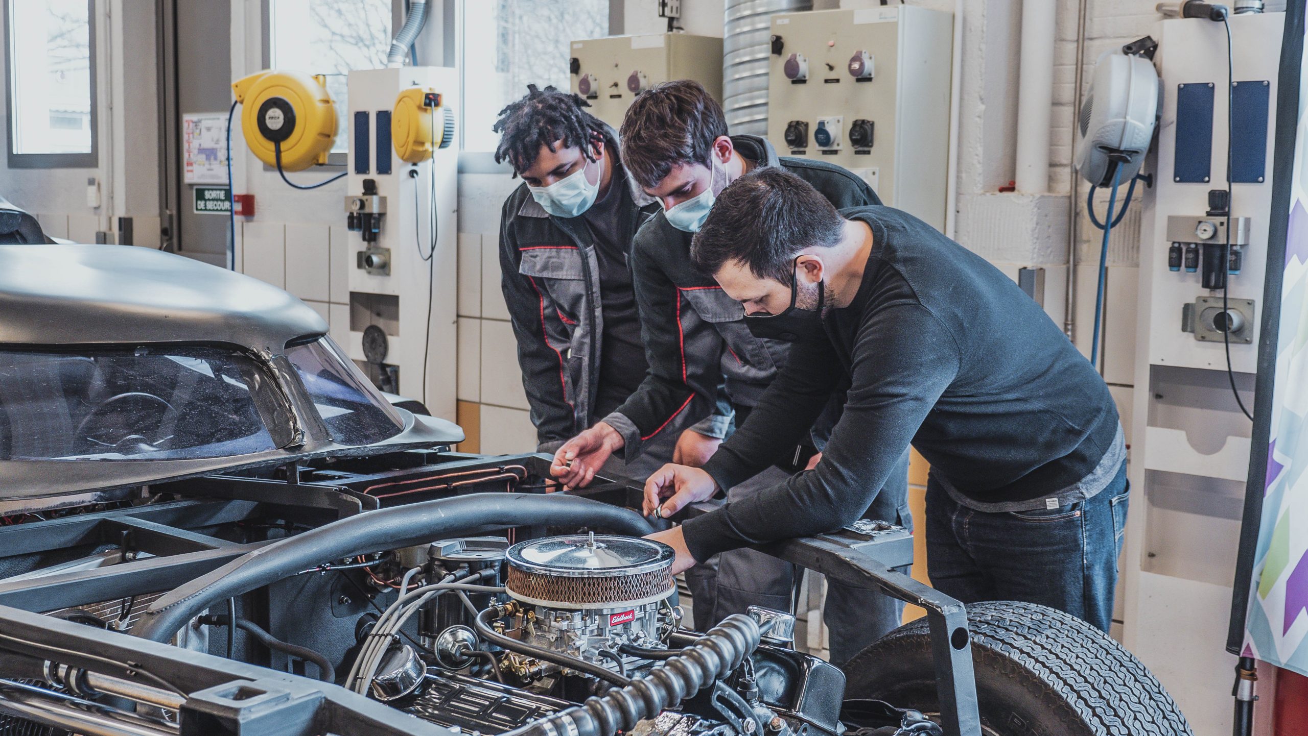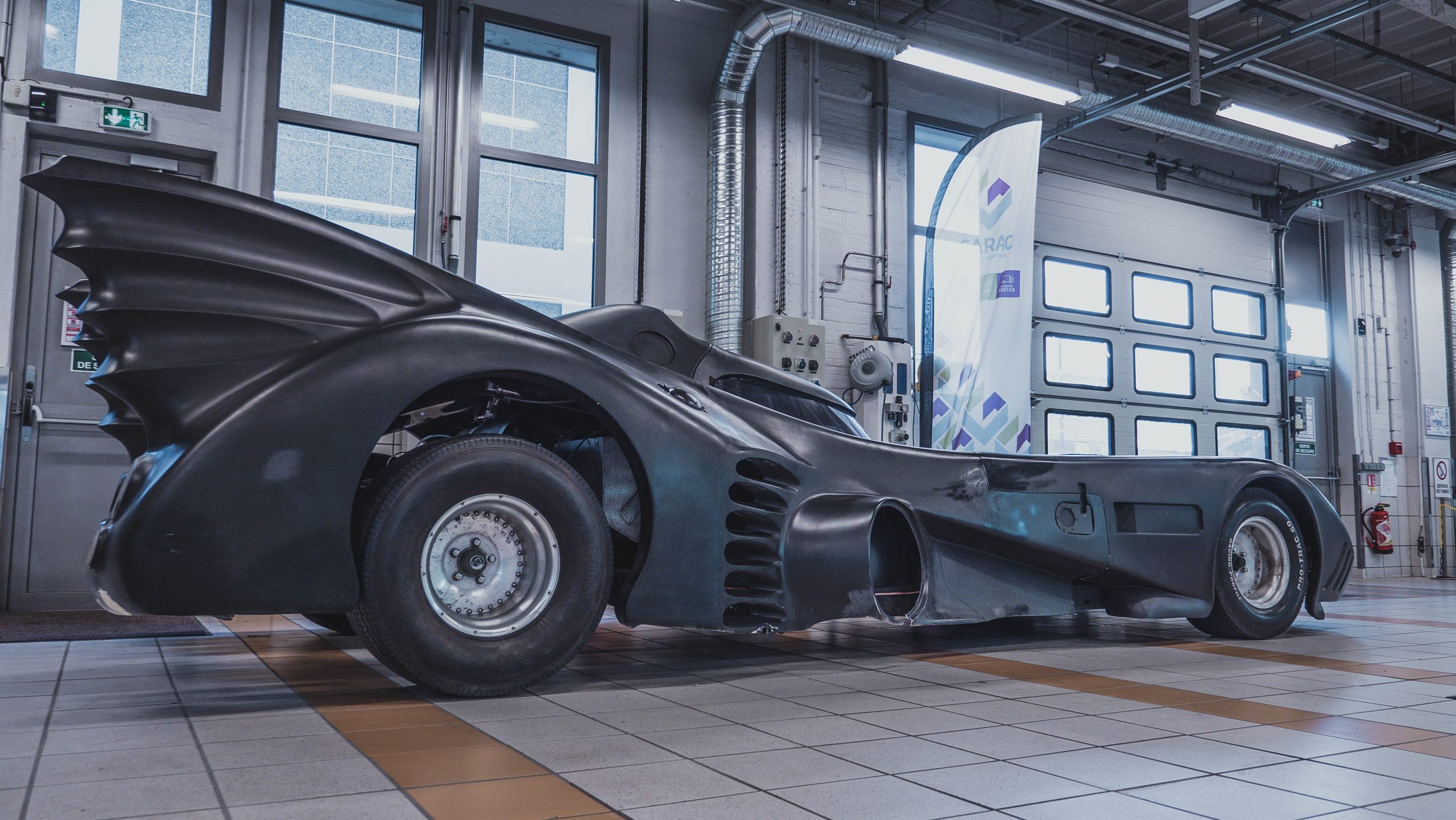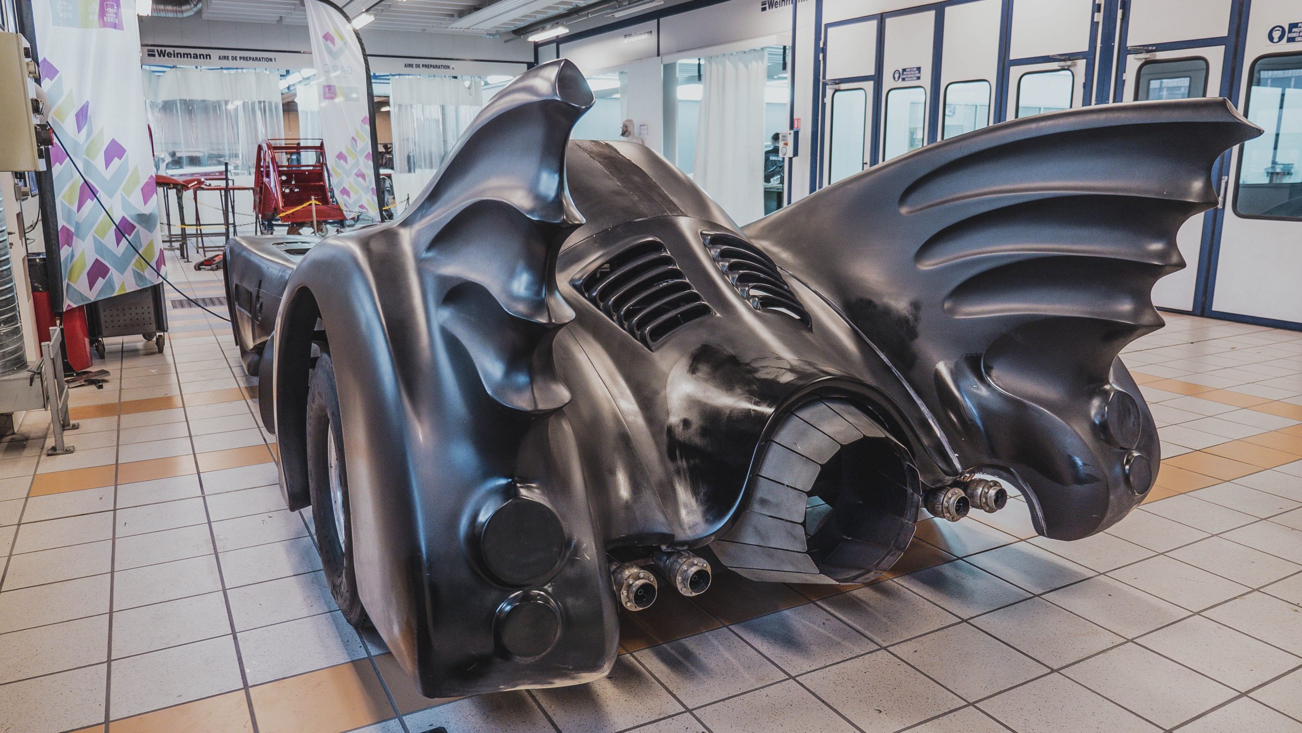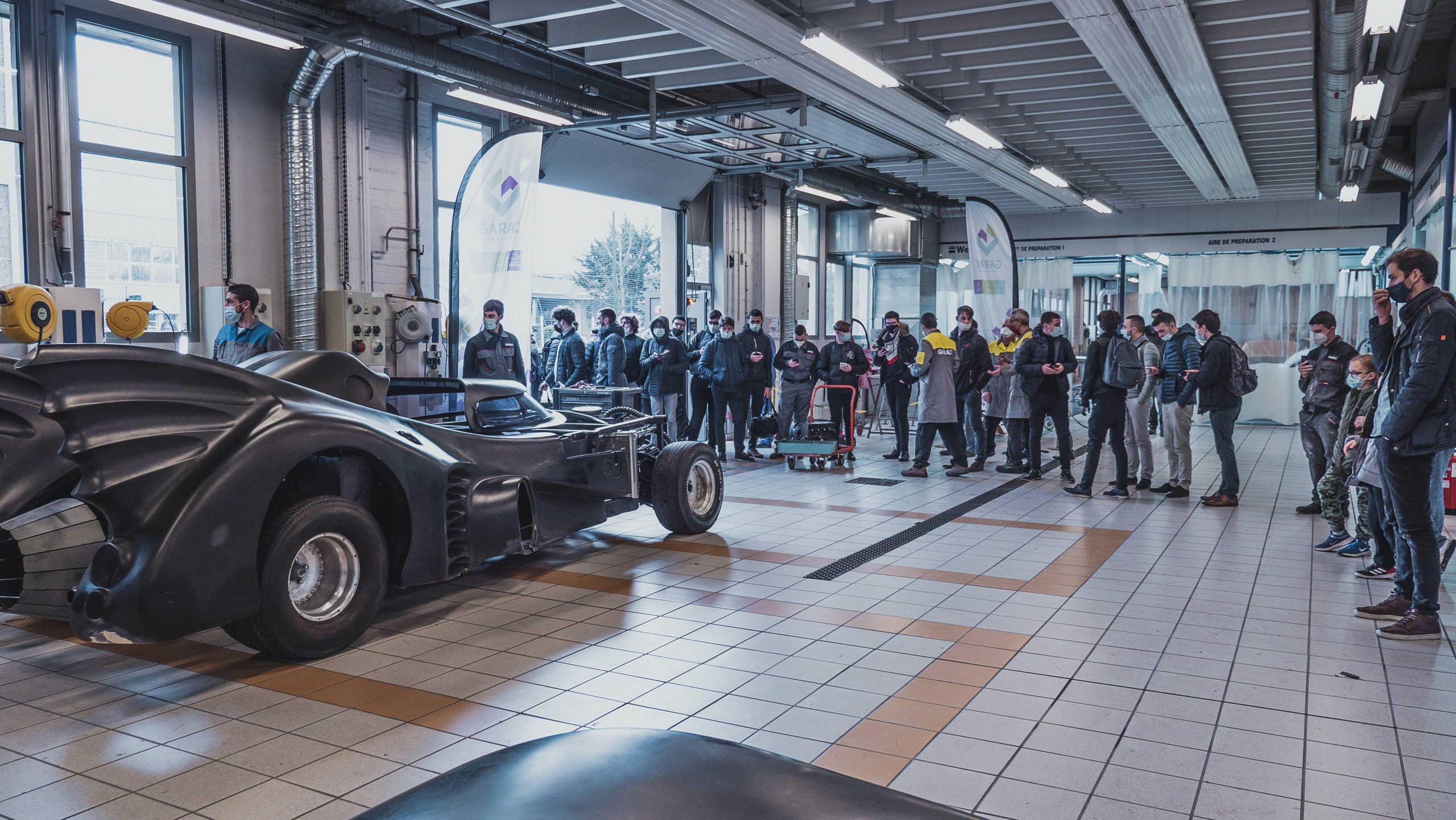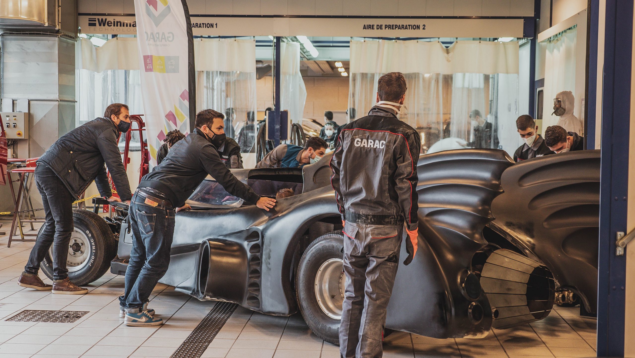 Movie Cars Central, la plus grande collection de voitures de films d’Europe, est venu au GARAC afin de faire une beauté à la Batmobile du film Batman de 1989 par les carrossiers peintres du campus.