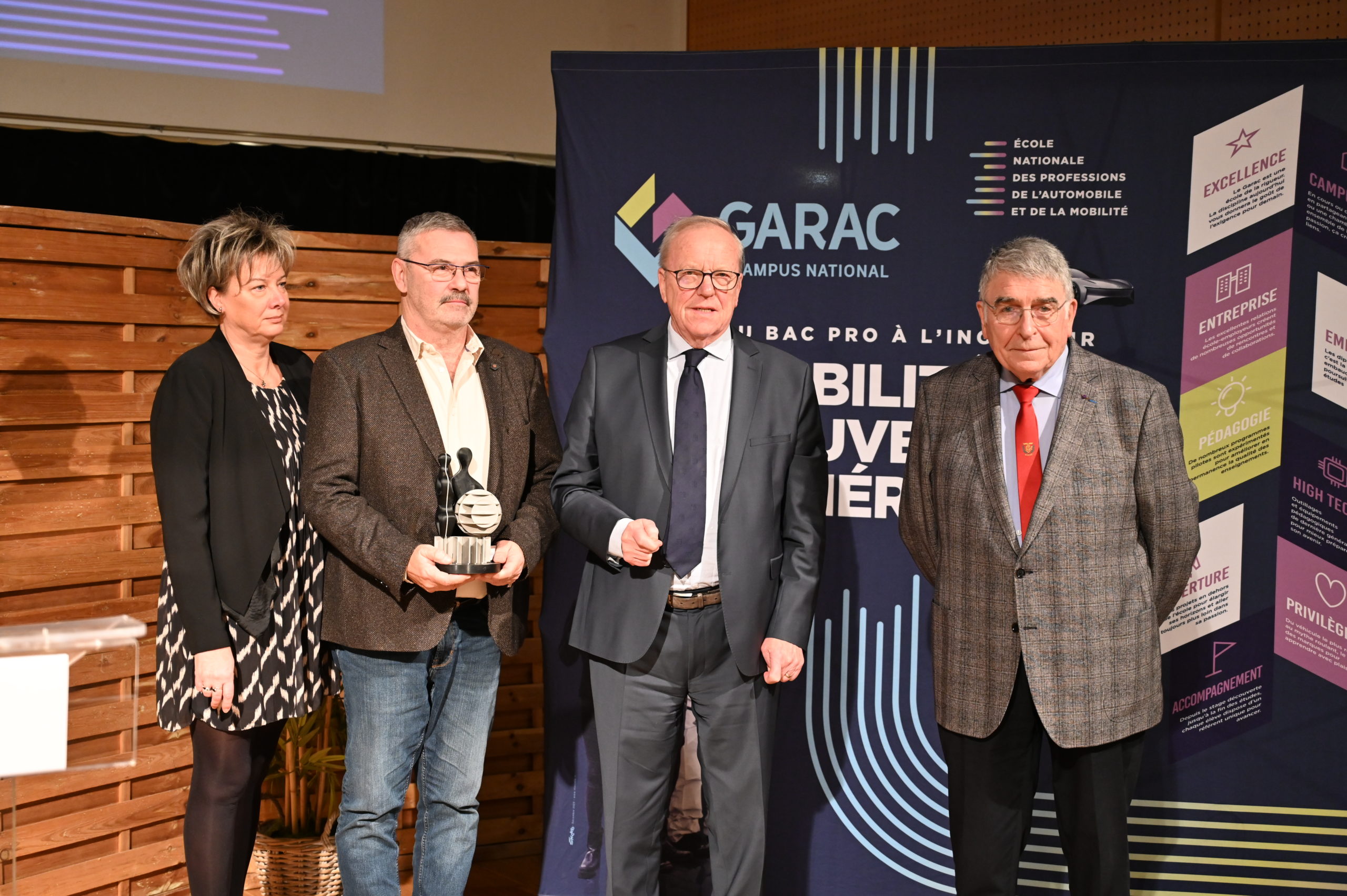 Présidée par Raymond Vié, Président du GARAC, accueillie par le Maire d’Argenteuil, Georges Mothron, cette cérémonie a récompensé 9 lauréats dans 4 catégories. Laurent ROUX, directeur du GARAC explique : « Nous travaillons avec de nombreuses entreprises. Certaines s’investissent tout particulièrement dans la formation des jeunes. Nous voulions les mettre en valeur, d’où l’idée de ces « Trophées du GARAC ». Les entreprises récompensées ont des dimensions variables : cet aspect est pris en considération par le jury par souci d’équité. L’accompagnement des jeunes formés en alternance ou statut scolaire, la qualité de la formation en entreprise, le soutien aux actions pédagogiques ou éducatives, la participation à la communication sur les métiers (journées portes ouvertes, Girl’s day, GARAC Connect Mobility, 3h du GARAC), le recrutement de nos anciens élèves, etc…sont autant de critères pris en considération ».