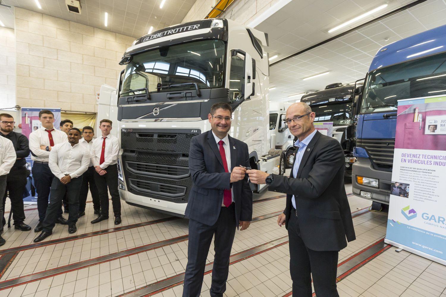 Avec cette nouvelle remise de clés d’un Volvo Trucks FH de dernière génération en ce mardi 17 septembre par Laurent Carpentier, Directeur Volvo Trucks Center Nord, Volvo Trucks entend renforcer son partenariat avec le GARAC pour partager avec lui les solutions technologiques les plus récentes et permettre aux jeunes de répondre aux exigences fortes du secteur en matière de qualité, de sécurité, de respect de l’environnement, de réduction de la consommation, de productivité, ou encore de confort de conduite au travers des véhicules Volvo Trucks.