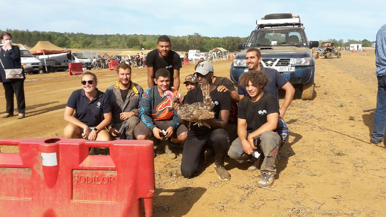 Suivant la tradition de cette fameuse course, les organisateurs leur ont remis le trophée de leur catégorie : un dindon (vivant) .. !