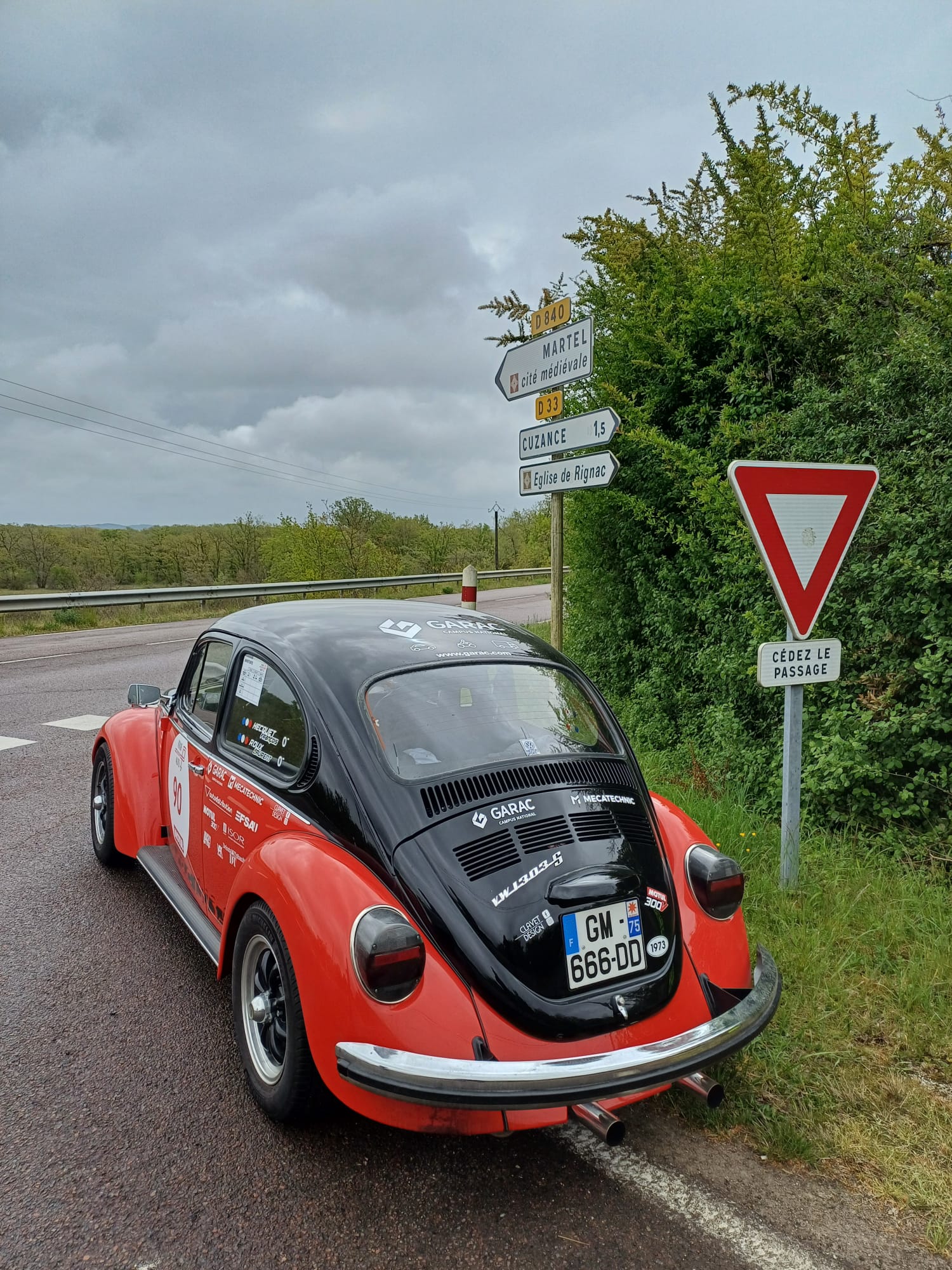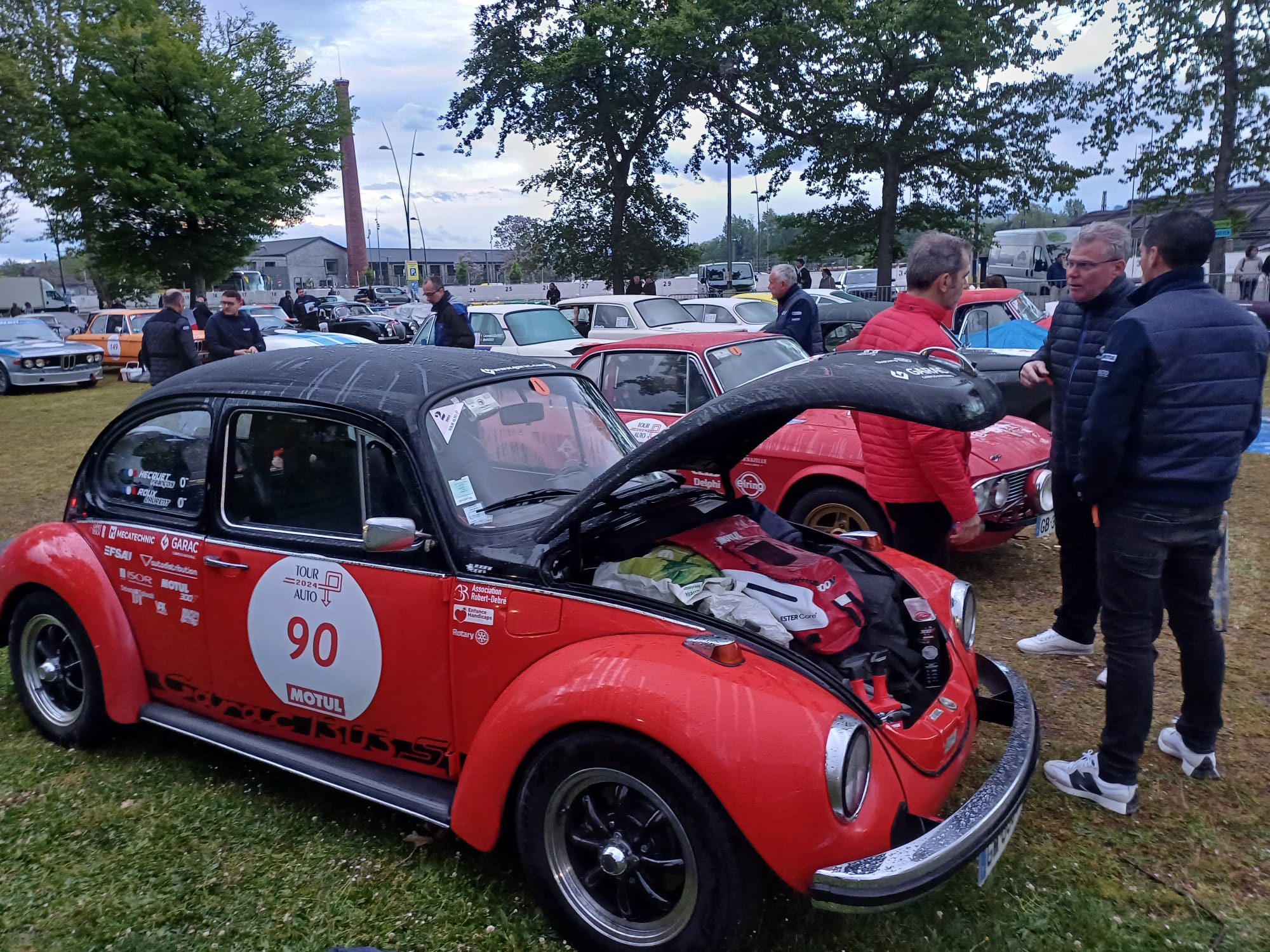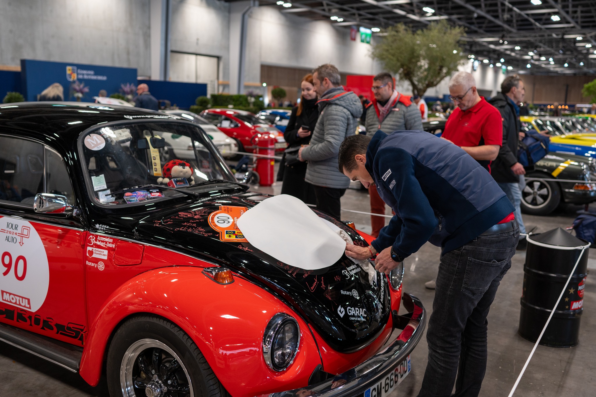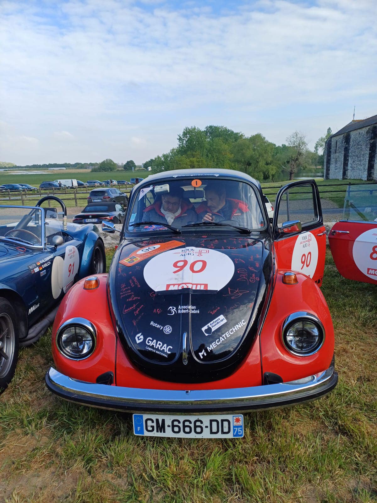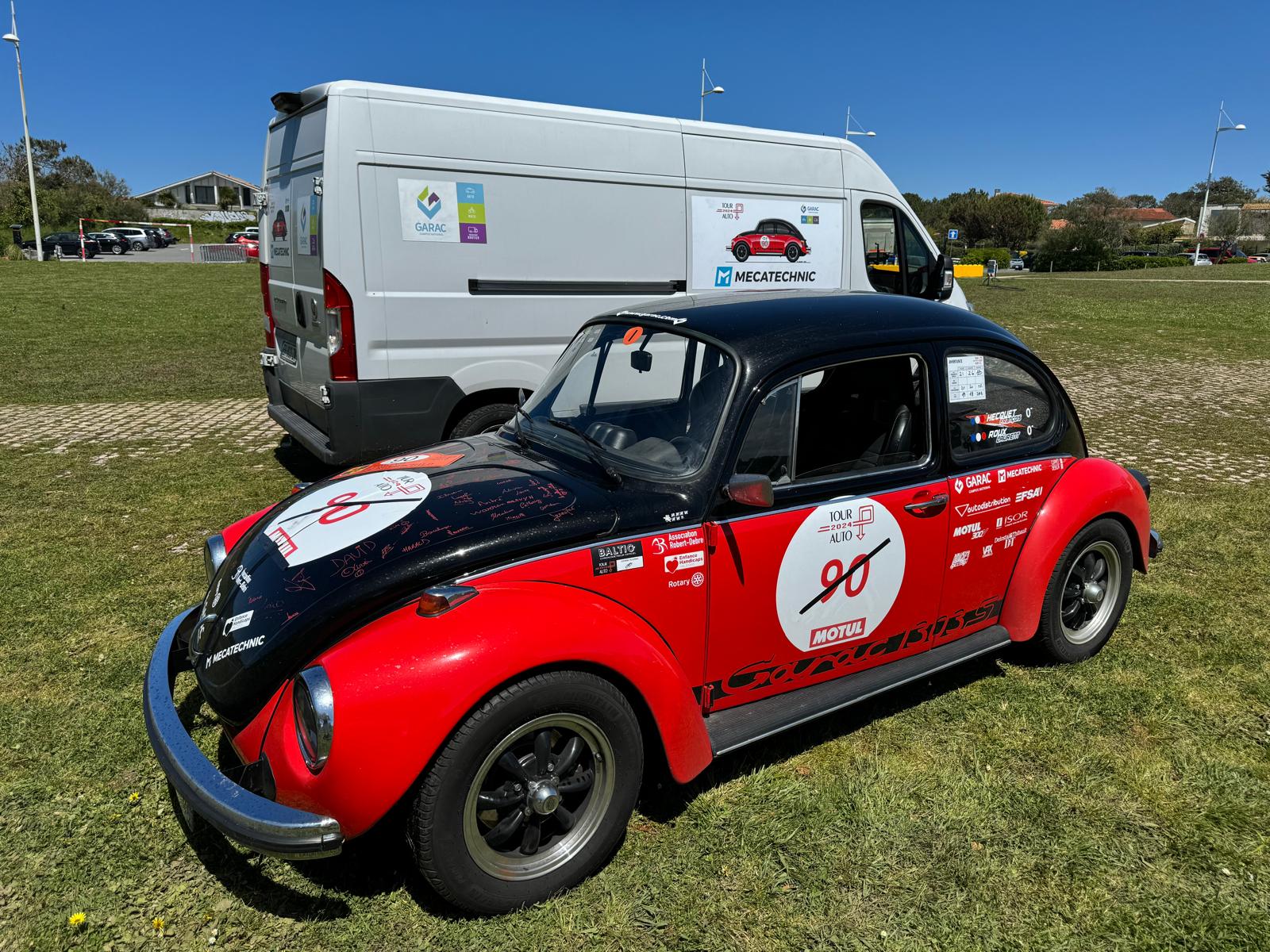 Pour la 2eme fois, la Volkswagen Coccinelle du Garac participe au fameux Tour auto avec une nouvelle robe rouge et noir réalisée dans les ateliers du Garac.