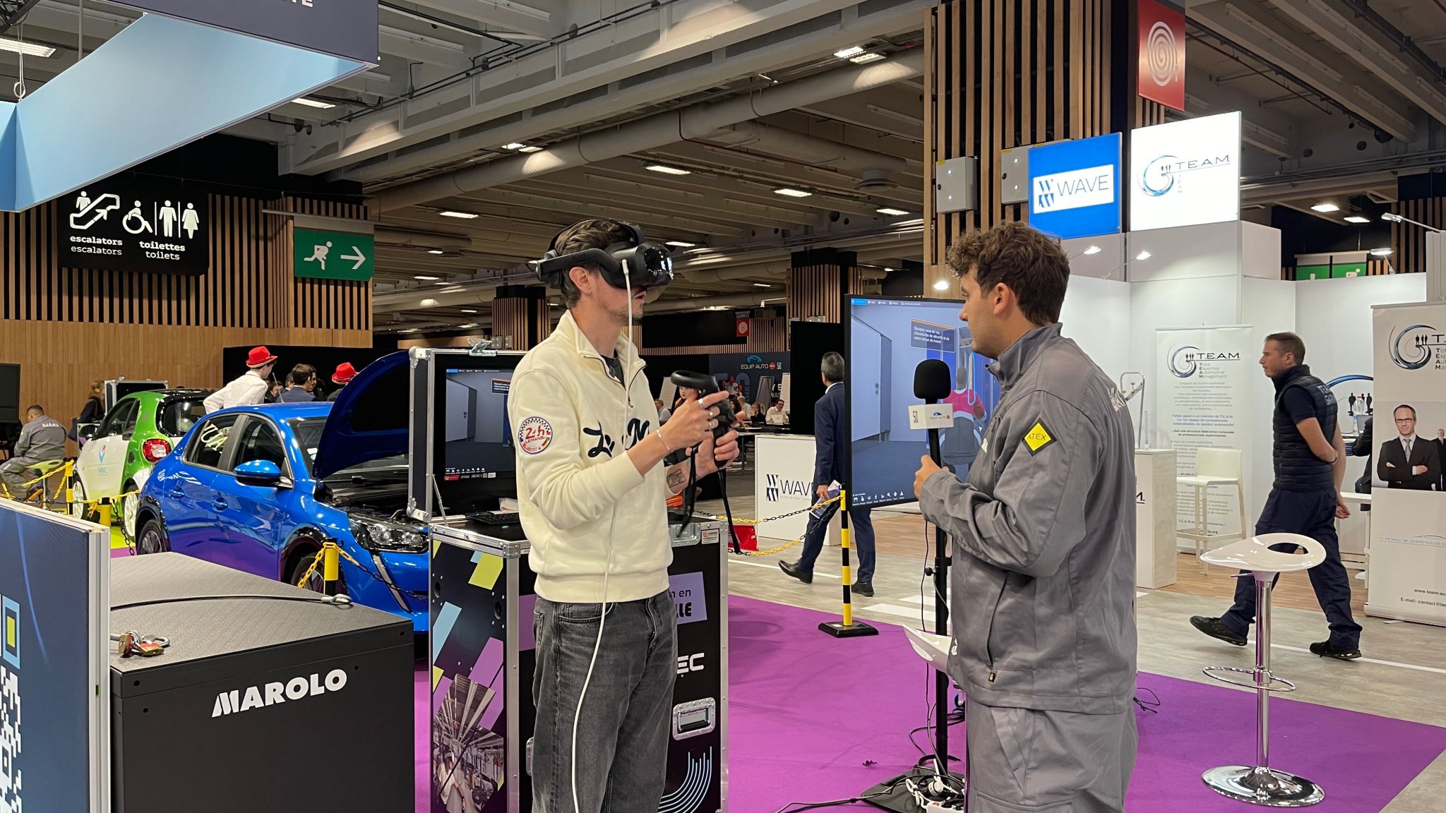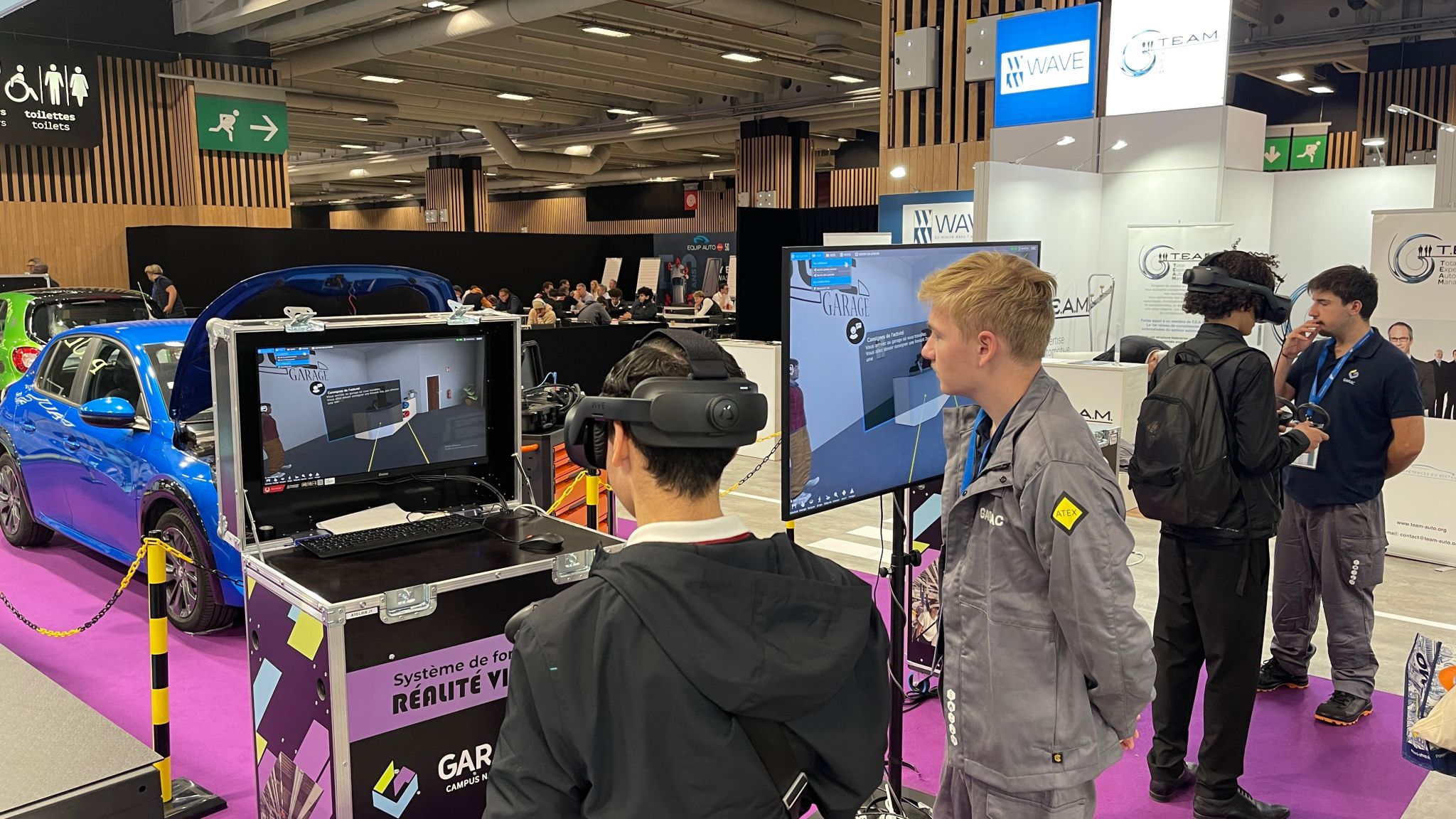 Le second stand, baptisé « e-Garage », était animé par les élèves de la formation FCIL MVEB .Véritable vitrine technologique, cet espace interactif proposait des animations en réalité virtuelle autour des thématiques de l’entretien et de la réparation des véhicules électriques.